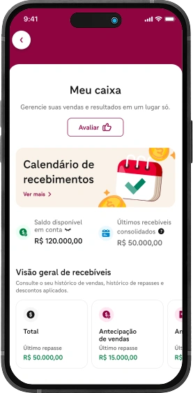 Antecipe suas vendas, de acordo com a sua preferência. Tudo direto pelo app, sem burocracia.